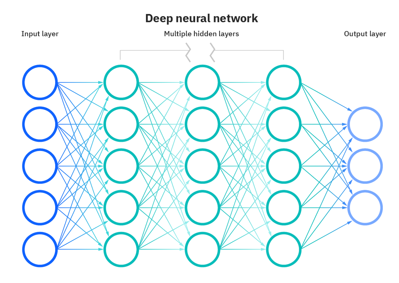딥 러닝의 '딥'은 신경망의 레이어 깊이를 의미한다. 입력과 출력을 포함하는 3개 이상의 레이어로 구성된 신경망은 딥 러닝 알고리즘으로 간주될 수 있다.