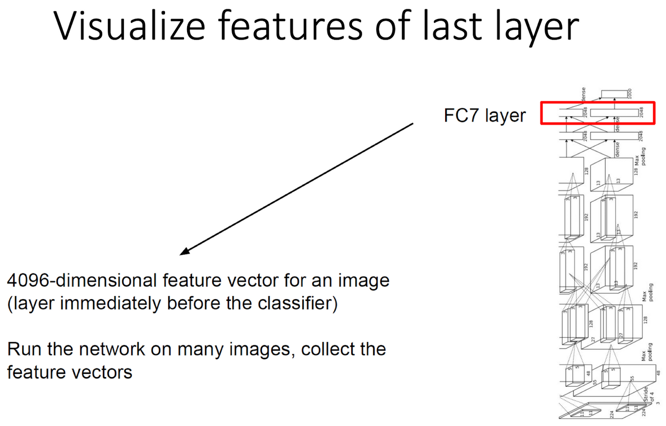 100장의 이미지를 넣으면 100개, 500 넣으면 500개의 피쳐가 나올텐데, 그 피쳐를 점으로 찍어볼건데, 피쳐는 dimension이 너무 커서 dimension reduction을 사용하여 중요한 것만 남기고 줄인다.