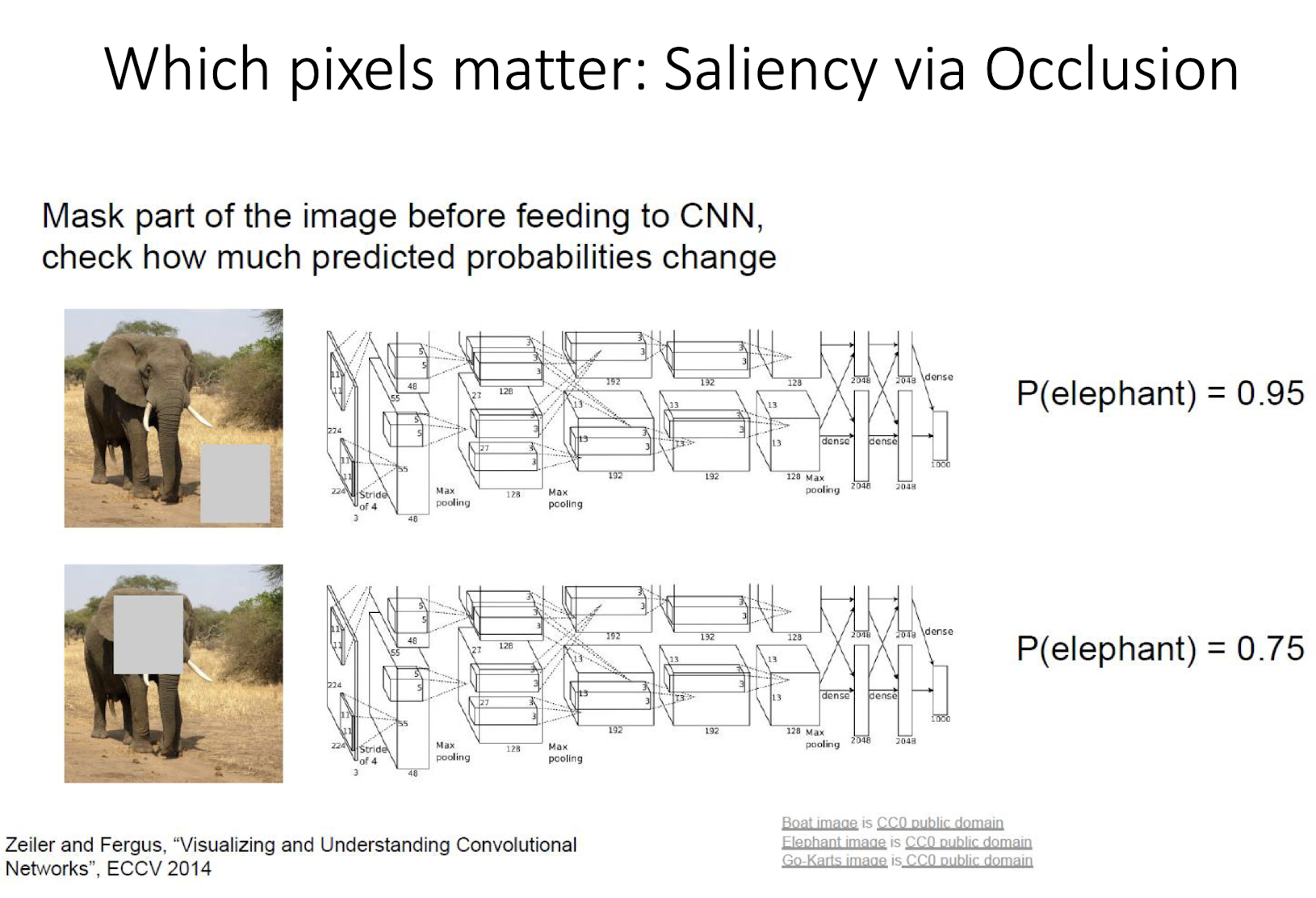 코끼리 이미지의 일부분을 masking한 뒤, 네트워크에 통과시키는 실험을 통해 해당 이미지의 어떤 부분이 결과에 영향을 주는지 확인할 수 있다.