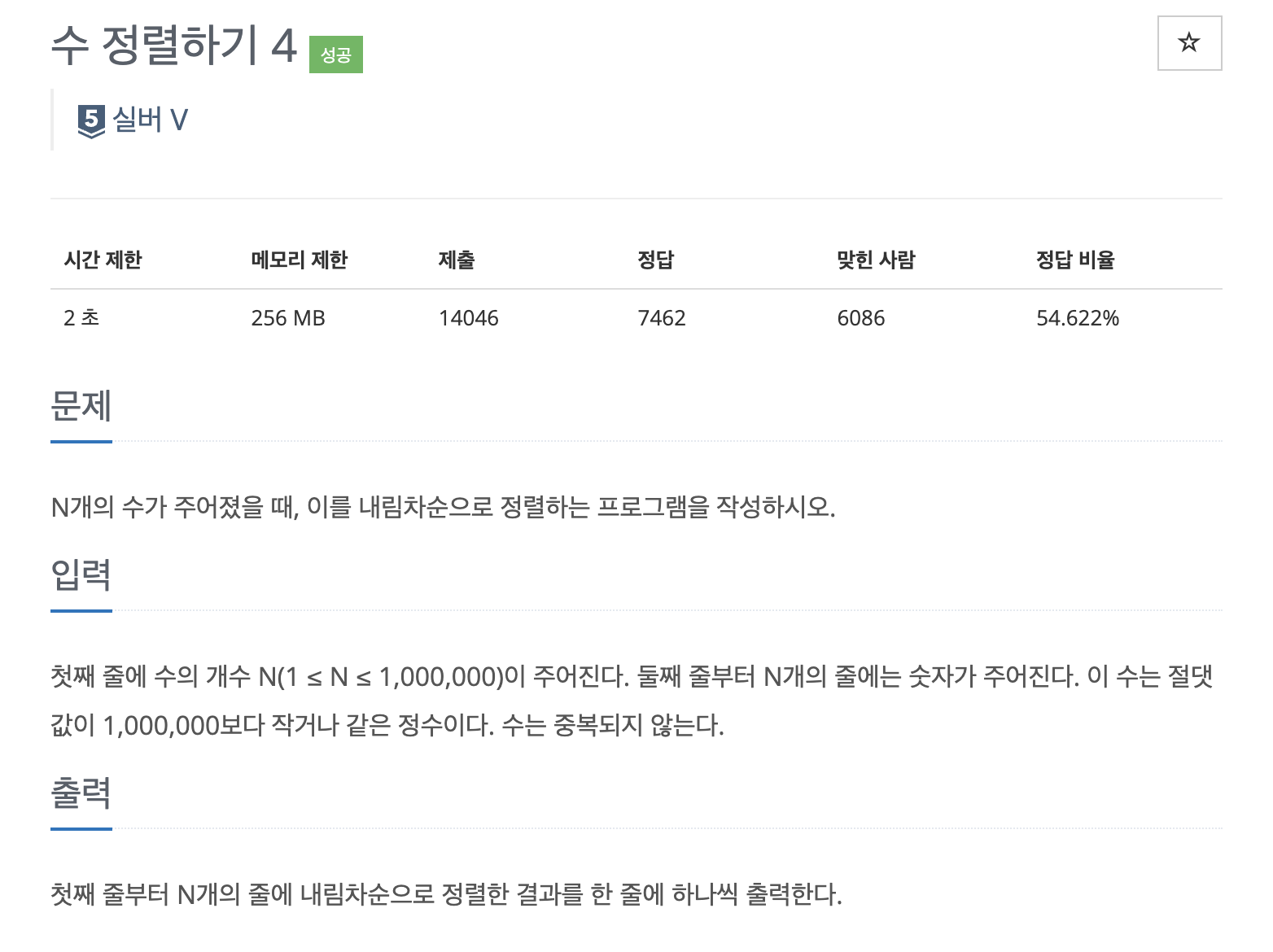 단순히 reverse 정렬하면 되는 문제였는데, 계속 시간초과가 떴다.