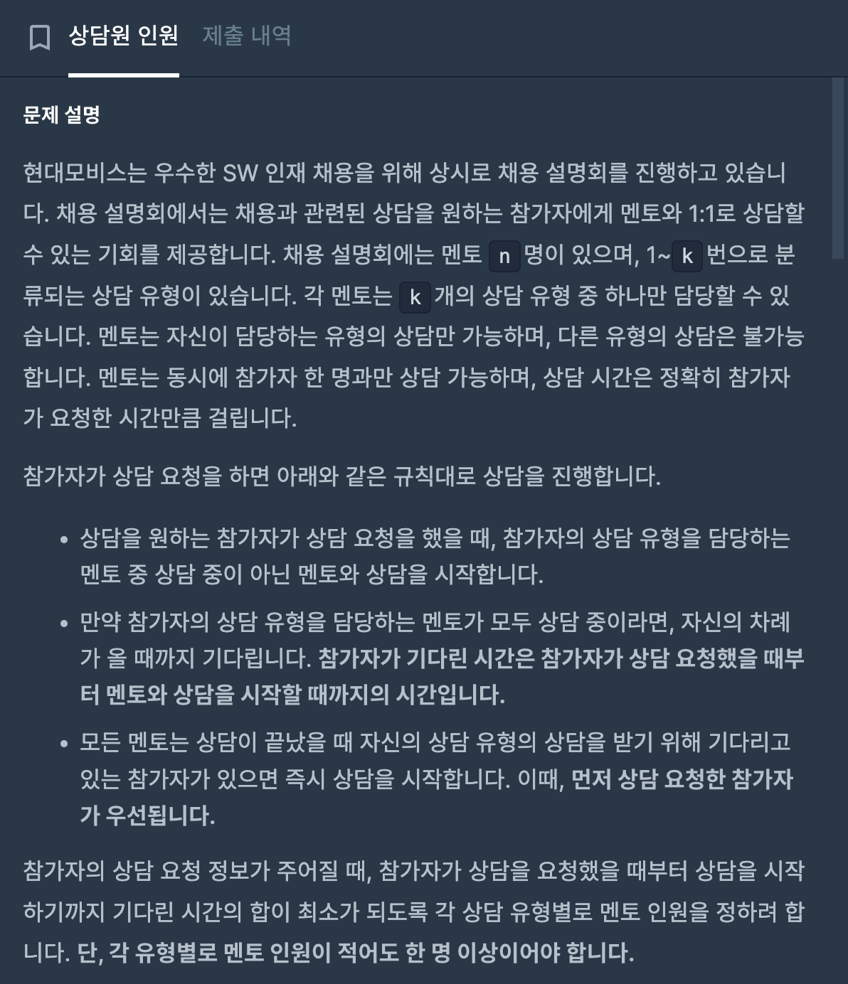 상담이 끝나는 순서대로 무조건 진행해야 했는데, 그 부분을 다르게 구했었다 ...