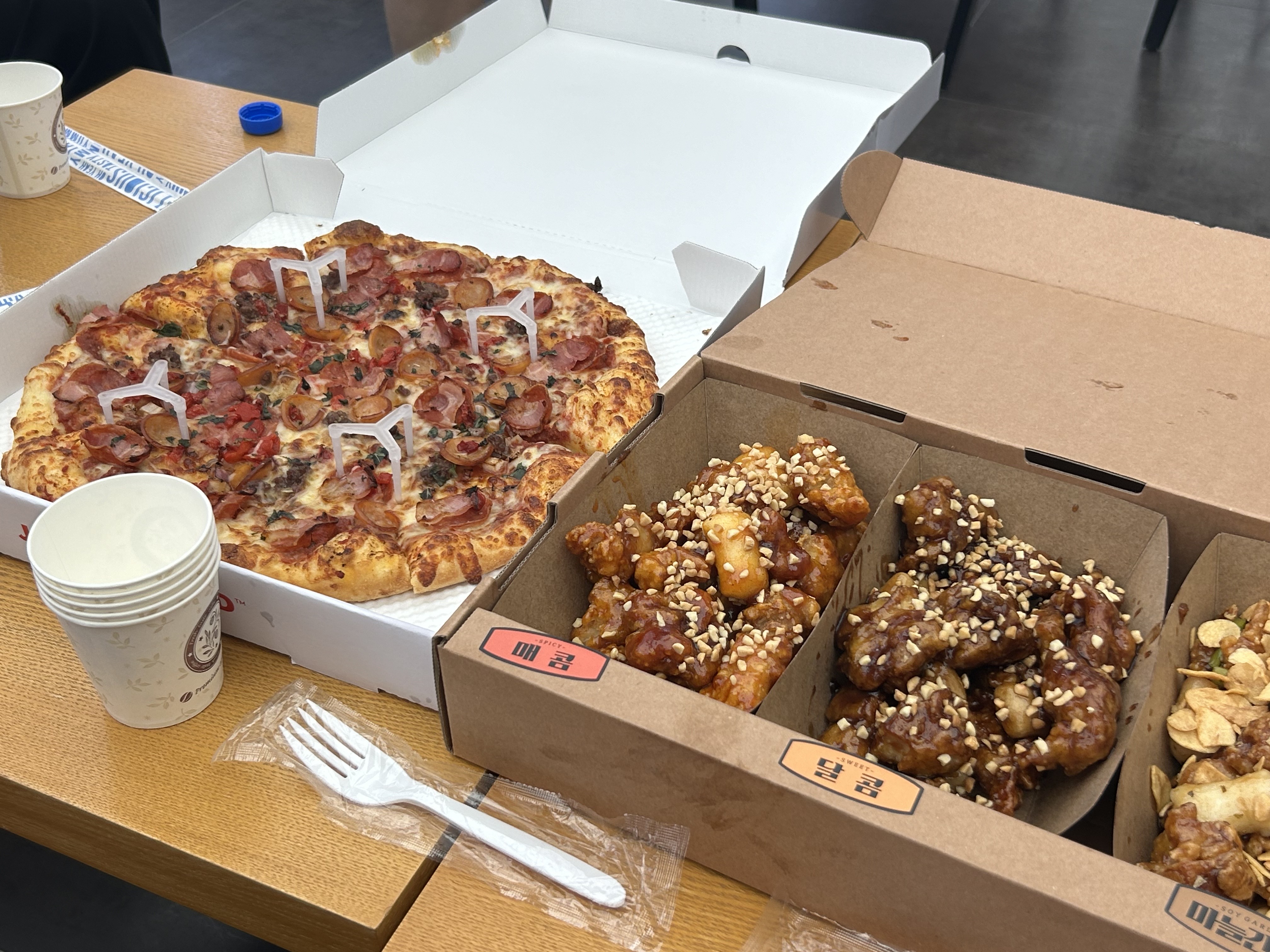 맛있는 피자🍕와 치킨🍗을 먹으며 SKT, SK하이닉스 등의 현직자 분들과 취업, 진로와 관련된 이야기를 나누었습니다 ㅎㅎ